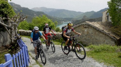 Partenza da Pomaretto .Risalire la Val Chisone fino alla Balma poi nella salita successiva poco prima di Villaretto si prende il bivio sulla sinistra che scende verso il Chisone .Attraversato il ponte dopo un leggero tratto pianeggiante incomincia la salita vera verso il vallone di Bourcet.Dopo una serie di duri tornanti si arriva al bivio della Clea .Proseguire dritto e dopo un tratto in piano si ricomincia a salire con alcuni lunghi traversi e qualche tornante che ci fanno prendere quota si arriva alla cappella del Sacro Cuore ,bel punto panoramico sulla Val Chisone ,dove troviamo anche una fresca fontana per il rifornimento. Continuare su sterrato ora piu' agevole fino a raggiungere la borg.Chasteiran , in caso di necessita c'è un agriturismo sempre ben fornito di prodotti locali: il Rifugio Serafin.La salita continua passando alla bergeria del Serre poi un lungo traverso ci separa dall'alpe Ciouliere.Qui finisce lo sterrato e ci tocca continuare la salita per circa 45 minuti con la bici a spalla. Prendere il sentiero davanti alla bergeria verso ovest direzione Ufficio Tecnico e dopo alcune ripide salite ci porta al colle Means posto tra il Becco dell'Aquila e la Punta Raccias .Di qui si scende all'alpe Troncea nel vallone di Massello,all'inizio portiamo la bici giu'per prati di Culmian dirigendosi a destra verso un vecchio ricovero per le pecore ,da qui parte una traccia a sinistra che scende verso i pini del col Plen dove troviamo la carrozzabile che scende a Massello .Raggiunto l'Alpe Troncea si continua la discesa passando alle miande Praiet poi alla borg Occie ed Aiasse ,qui abbandoniamo la sterrata e si prende il sentiero che passa in mezzo alle case e arriva al Roberso vicini al comune .Scendere su asfalto fino a prendere il bivio per Salza ,poco prima si incontra la Foresteria di Massello che Vi puo' offrire di tutto e di piu'.Salire il vallone di Salza passando vicino alla borg. Campo la Salza, fino alla borg. Didiero, anche qui troverete due bar ristoranti ben forniti di prodotti locali ,appena dopo il ponte a sinistra parte lo sterrato che sale al Colletto delle Fontane,un paio di duri tornanti su sterrato e qualche traverso interminabile si arriva al colle. Dopo un falsopiano si riprende a scendere,con alcuni tornanti si arriva alla borg. Fontane. Appena passato il cimitero sulla sinistra una pista scende ad un ottimo agriturismo.Dopo la borgata abbandonare la strada asfaltata e prendere lo sterrato a destra che sale a Serre Vecchio, qui ci aspetta ancora una tosta salita con pendenza al limite della ciclabilità,alcuni tratti con fondo in cemento,arrivati alla borgata le ostilità sono finite, si prede il sentiero in mezzo alle case e si scende in sella alla borg. Bounous, da qui parte la carrozzabile che poco dopo arriva a Rodoretto Ritorno a Pomaretto su strada provinciale asfaltata.