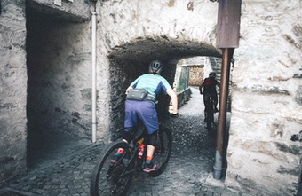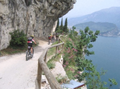 Partenza da Pomaretto . Fino al Lago Lausun seguire l'itinerario Lausun GranTruc Azzara'poi prendere lo sterrato che scende a destra verso la bergeria Lausun ignorare il bivio che scende alla bergeria e continuare dritto su falsopiano fino ad arrivare ad uno chalet di legno con un caratteristico larice di fianco, poi dopo un tratto in leggera salita si scende con alcuni tornanti alle bergerie della Cialancia ,la strada è quasi tutta ciclabile a parte alcuni tratti franati ultimamente causa le piogge.Dietro le bergerie del Lausun cercare il sentiero segnato di rosso che sale il versante opposto a quello sceso. Ora si sale tutto con la bici a fianco(circa un ora e mezza di portage) il sentiero è abbastanza bello e ben visibile grazie ai volontari del CAI Val Germanasca che recentemente hanno fatto manutenzione.Dopo una bella salita si arriva alle bergerie del Lausun si attraversa il rio e si ricomincia a salire dopo il primo tornante c'e un passaggio esposto su roccia ma niente di pericoloso poi si continua ancora a salire per alcuni tornanti su di una bella traccia sull'erba in alcuni tratti anche pedalabile .L'ultimo sforzo e si arriva a Rocca Bianca ,prestare attenzione all'ultimo tratto molto esposto, che causa ultime piogge è franato, piuttosto salire in cresta e raggiungere la punta passando tra le rocce.Dopo la meritata pausa si ritorna indietro e si scende verso il Colle della Balma appena sotto al vecchio ricovero. Di qui parte sulla destra una mulattiera lastricata che con un lungo traverso in piano porta al lago di Envie e Prali . Dopo cento metri c'è un bivio ben segnalato sulle pietre in terra ,abbandonare la mulattiera e prendere il sentiero che scende verso le cave del marmo inizialmente con un lungo traverso molto tecnico in mezzo alle pietre ma poi man mano che si scende migliora ,si attraversa una pineta e si giunge nei prati della Colletta Sellar poco distante dalle cave del marmo della Maiera. A sinistra parte la carrozzabile che scende a Indiritti e Prali ,a destra di fianco alla baracca della teleferica parte il sentiero tutto a tornantini che scende alle vecchie miniere di talco del Malzas, abbastanza tecnico ma ciclabile al 90% e se fatto nel periodo di giugno è una meraviglia godersi la fioritura dei rododendri.Qui si possono ancora vedere i vecchi ruderi delle baracche dove alloggiavano i minatori ,volendo si prosegue in piano per circa 2 km sulla decauville e si arriva a Punta Croc stazione di partenza della teleferica per Perrero , sono ancora visibili alcuni pezzi della teleferica,tutto il complesso era chiamato Il Grand Courdoun.Ritornati a Malzas si prende il sentiero pedalabile che scende sulla destra nei prati poi attraversa una pineta ed arriva al Crorsetto . Prendere la sterrata che scende con diversi tornanti, passando vicino alle vecchie miniere del talco recentemente abbandonate e si raggiunge la strada asfaltata che sale a Prali girare a destra e scendere verso Perrero e Pomaretto